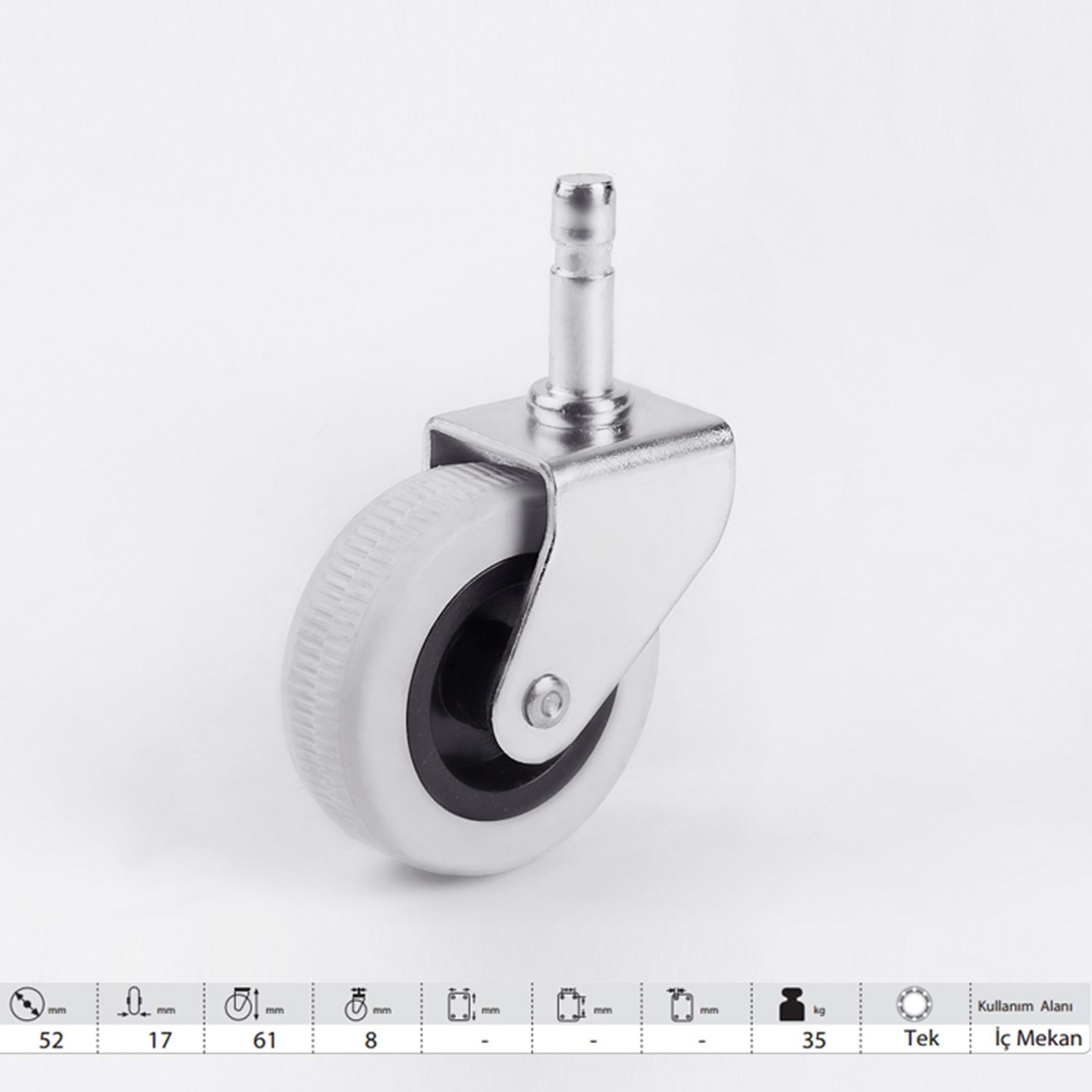 50x20 mm Optimize Ölçüler: 50 mm tekerlek çapı ve 20 mm genişliği ile hem stabilite sağlar hem de mobilyanın yüksekliğini ideal seviyede tutar.